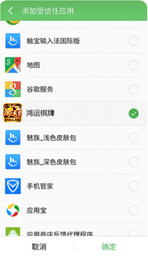 找到鸿运棋牌然后勾选点击「确认」