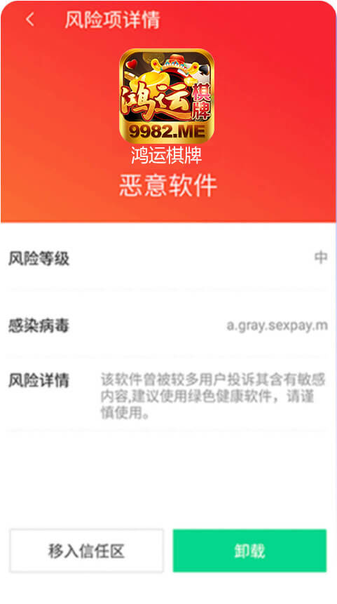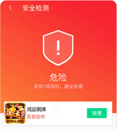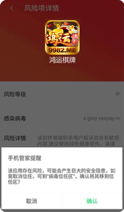 下载后会弹出「发现危险」请不用担心,鸿运棋牌没有任何病毒,请点击「仍要安装」